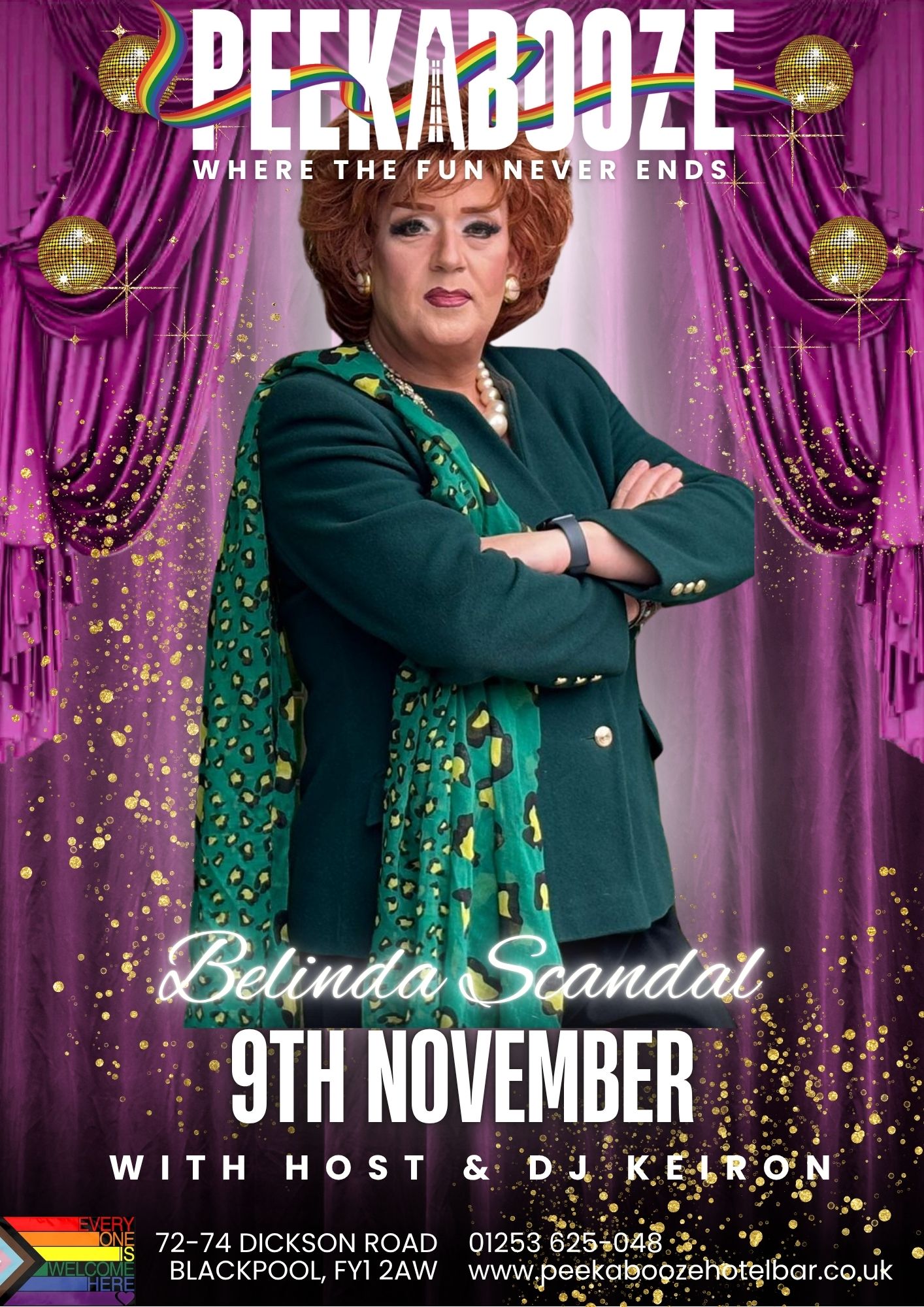 Get ready, Blackpool! The one and only Belinda Scandal is storming the stage this Sunday with a show that promises outrageous laughs, fierce performances, and unforgettable moments. Whether you’re a die-hard fan or a first-time guest, this is your chance to experience the scandalous magic that only Belinda can deliver.