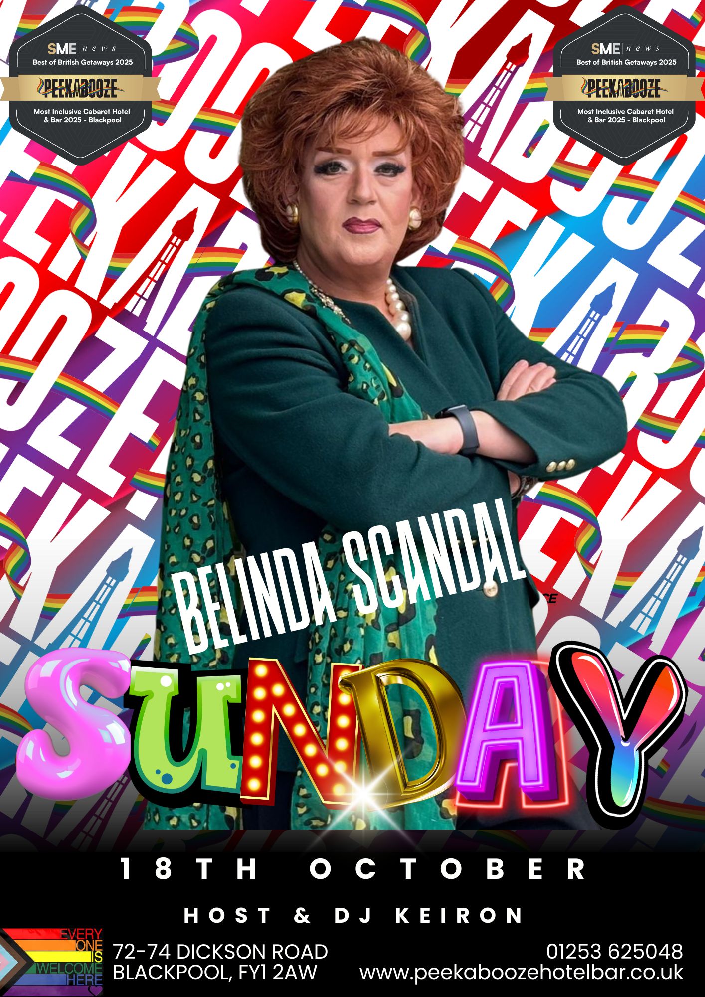 Get ready, Blackpool — the queen of chaos, comedy, and pure cabaret brilliance is returning to PeekaBooze, and we could not be more excited. Belinda Scandal is BACK by overwhelming demand for one unforgettable Sunday night that promises glamour, laughter, and a whole lot of scandalous fun.