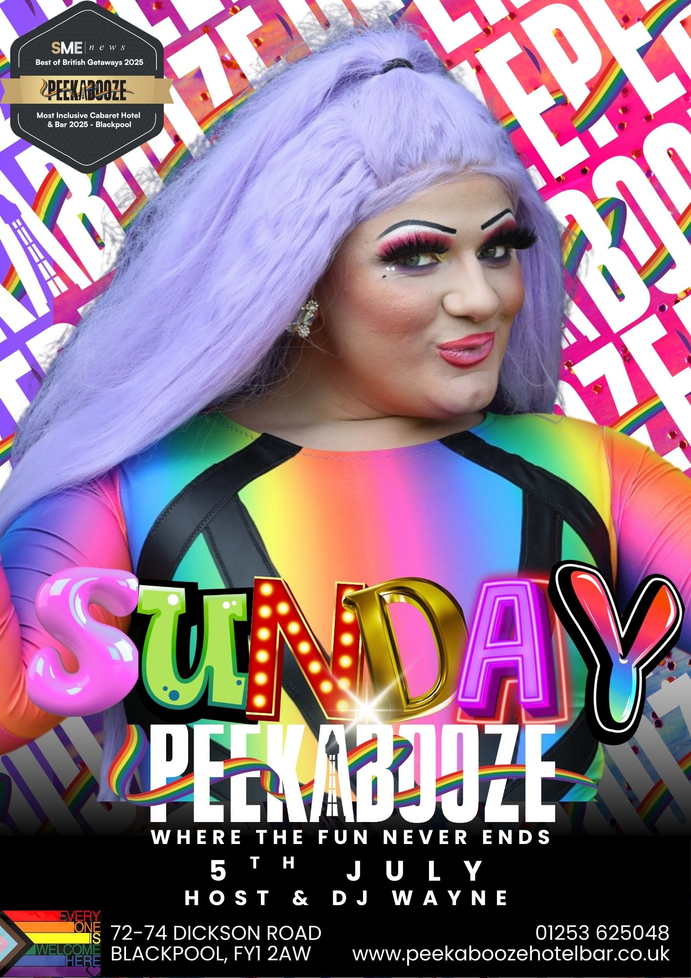 PeekaBooze proudly welcomes Bailey Mills for the first time on Sunday 5th July at 9.00pm. Known for their sharp wit, unique style, and unforgettable stage presence, Bailey delivers a show that blends comedy, character work, and top‑tier drag performance. It’s fresh, it’s fearless, and it’s the perfect way to light up your Sunday night. A brand‑new act with a one‑of‑a‑kind show — unmissable.