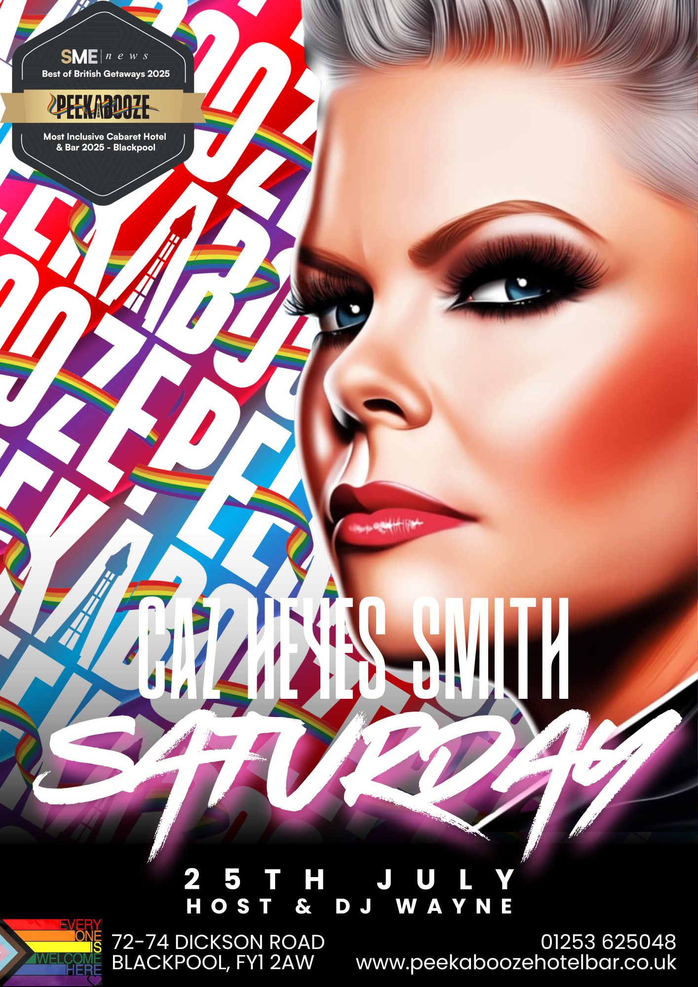 After six months away from the spotlight, the incomparable Caz Heyes Smith is finally back — and PeekaBooze is the only place to be this Saturday 25th July.