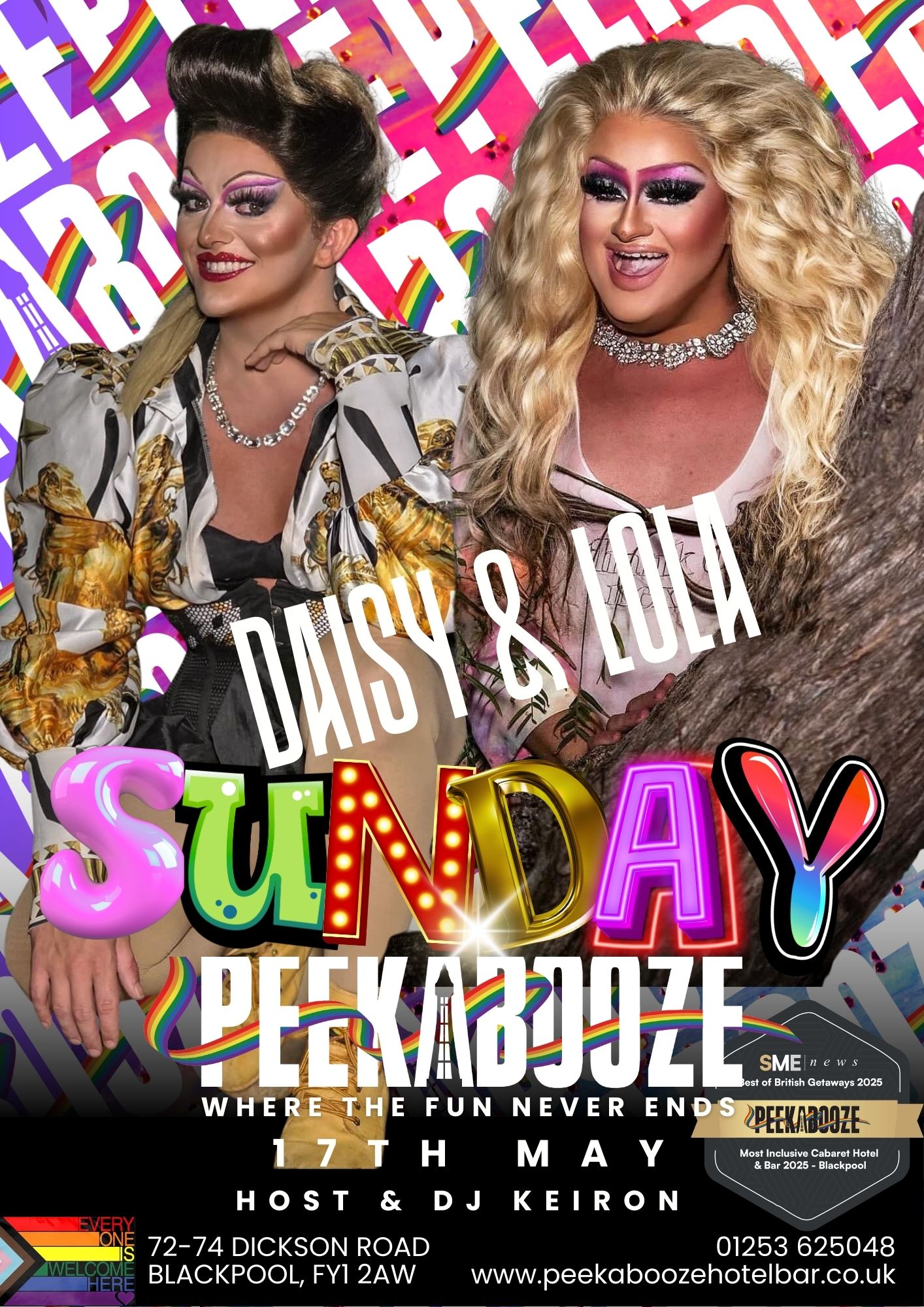 🌈 PeekaBooze Super Sunday Drag Show 💄 Starring Lola Fierce & Daisy Diamond 📅 Sunday 17 May ⏰ 9:00 PM 📍 PeekaBooze, Blackpool