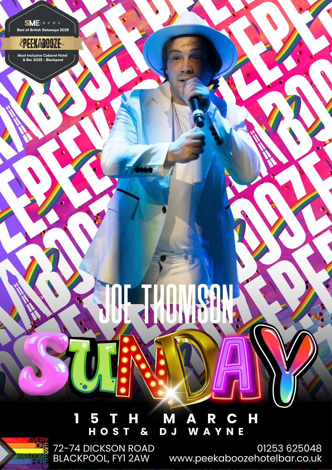 Get ready for a Sunday night that delivers pure entertainment from start to finish. PeekaBooze is proud to present our Super Sunday Show, headlined by the sensational Joe Thomson — a performer who knows exactly how to light up a room.