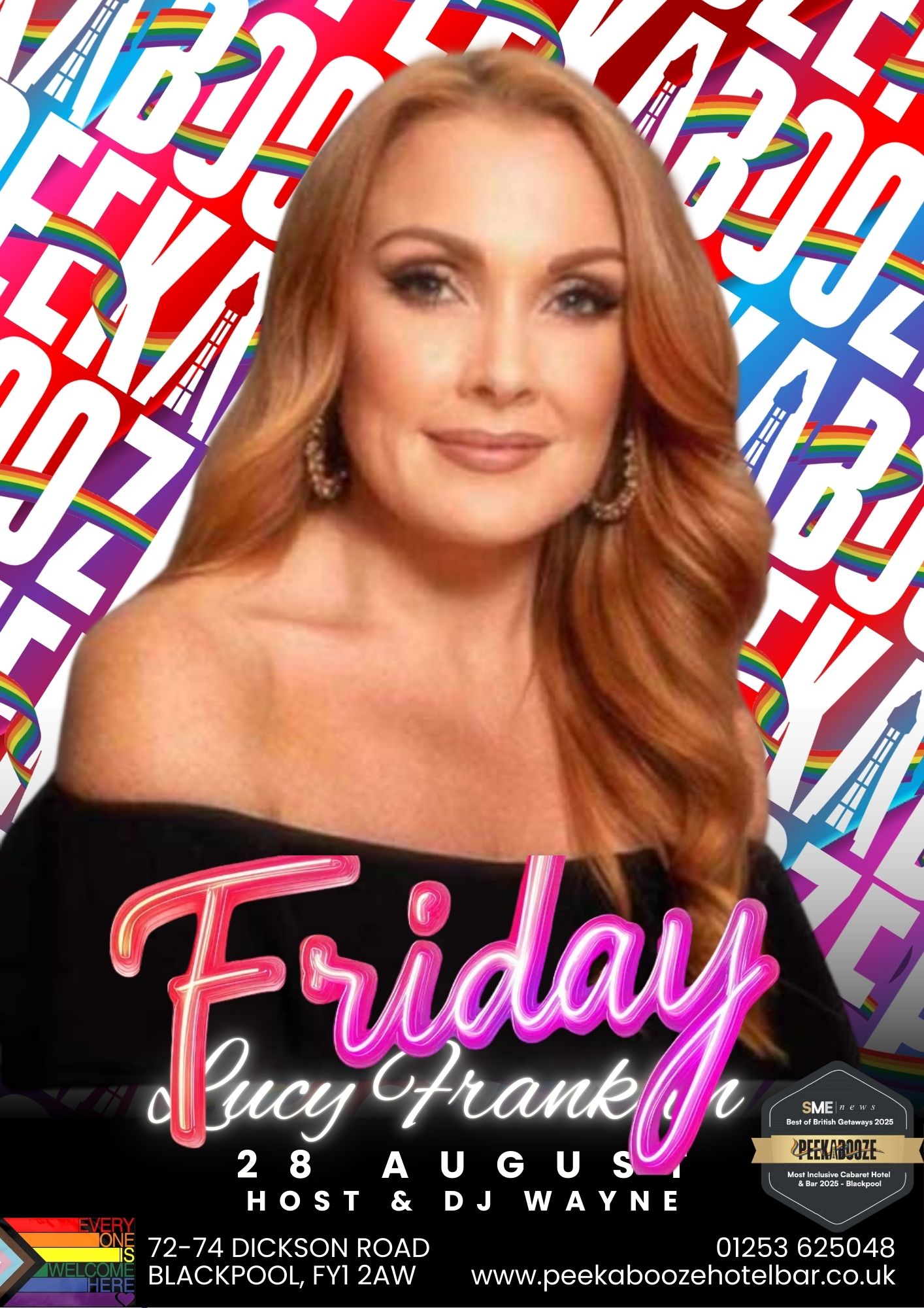 Lucy Franklin returns to PeekaBooze on Friday 28th August — and she’s ready to kick your weekend off in style. With powerhouse vocals, sparkling personality, and a setlist packed with feel‑good favourites, Lucy brings the kind of electric energy that fills the room from the moment she steps on stage. Expect big tunes, big moments, and a Friday night atmosphere you won’t forget.