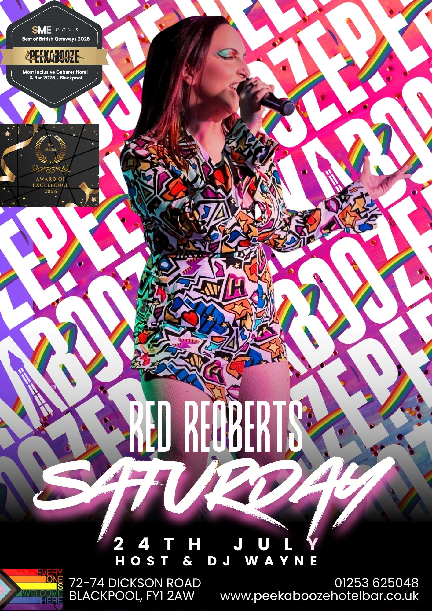 Join us on Friday 24th July at 10.00pm as Red Roberts lights up the PeekaBooze stage once again. Known for his smooth vocals, effortless charm, and ability to connect with every crowd, Red delivers a show that blends heart, humour, and top‑tier entertainment. Whether you’re out for a sing‑along or easing into the weekend with friends, he sets the perfect tone for a brilliant Friday night.